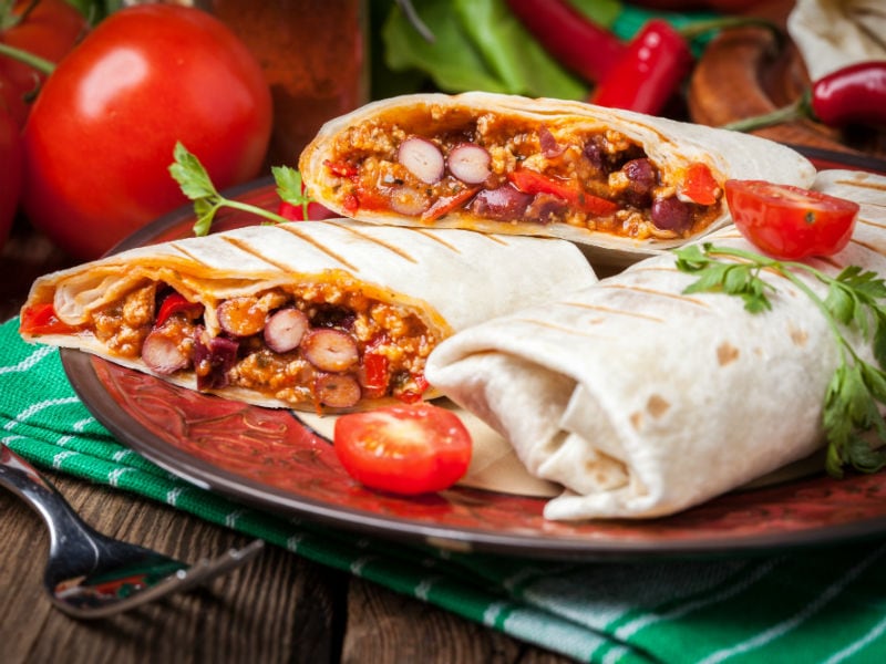 - 1 burrito kit (contains 8 tortilla shells, seasoning mix and burrito sauce)