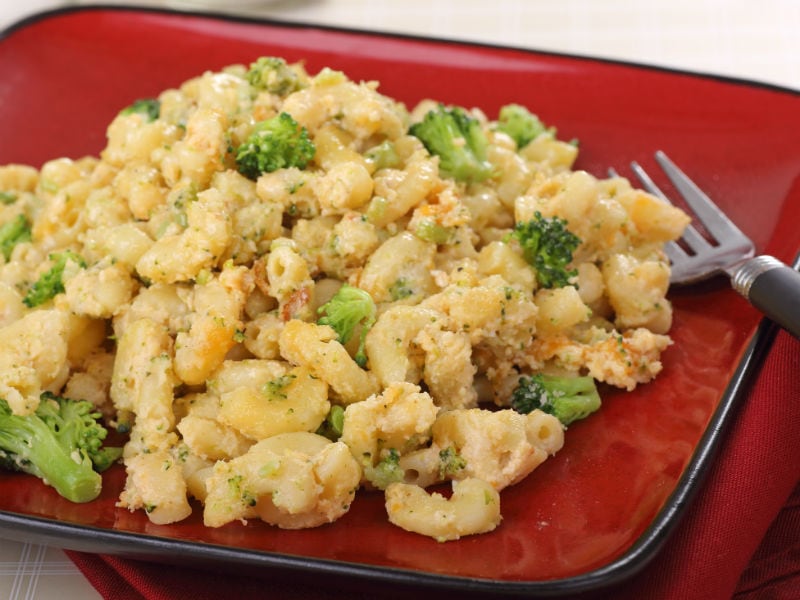 For a more balanced meal, add 4 cups chopped frozen broccoli to the boiling noodles when they are almost done. Drain with the noodles and mix in with the cheese sauce.