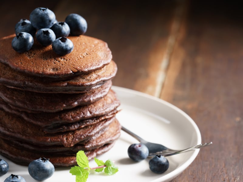5. Scoop batter into a small round frying pan. Cook until bubbles form on the surface of the pancake.