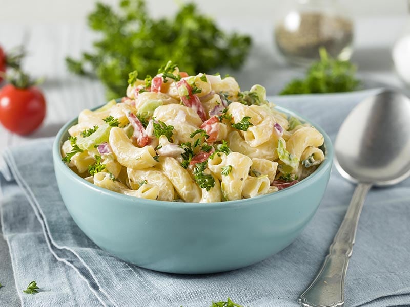 This is a creamy and classic pasta salad that will surely please the family. For a nutrient boost, use whole wheat noodles. For a protein boost, add a can of drained tuna.