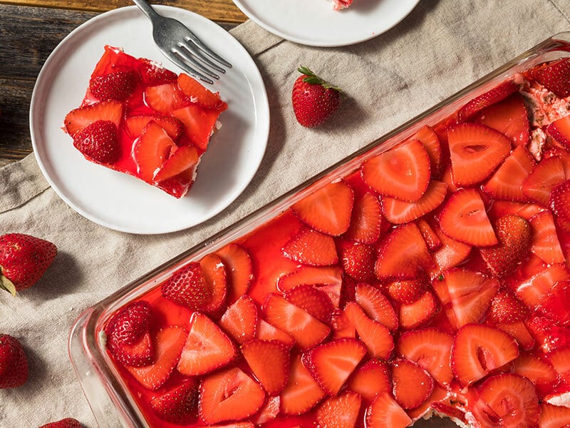 - Pour the strawberry Jello mixture into a large mixing bowl.
