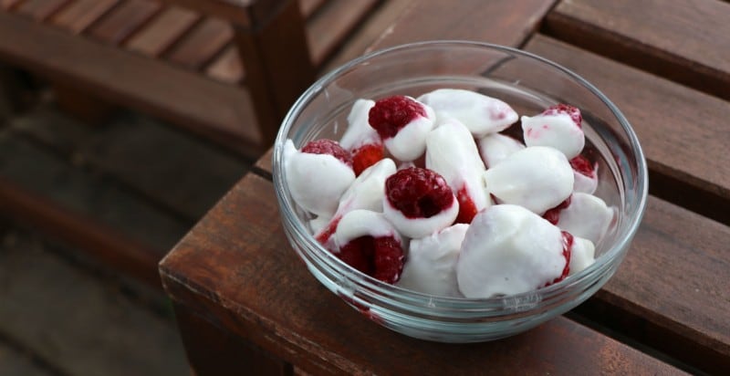 Everyone loves ice cream or a frozen popsicle in the summer but they can both be very high in sugar and fat. Instead, make your own! Freeze Greek or regular yogurt in a popsicle mold and add frozen fruit. Let chill overnight and now you have some delicious frozen treats for the whole family.