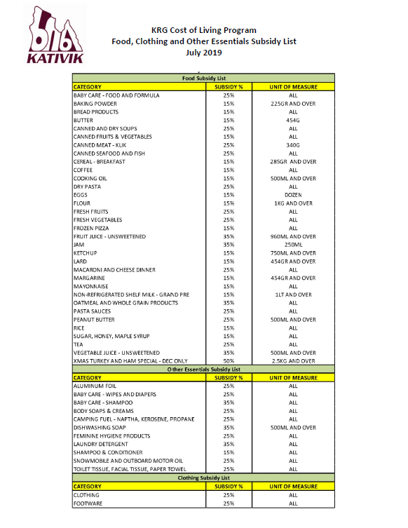 One year ago, the Kativik Regional Government (KRG) updated their list of items covered under the Food and Other Essentials Program to include a broader selection of products and brands.