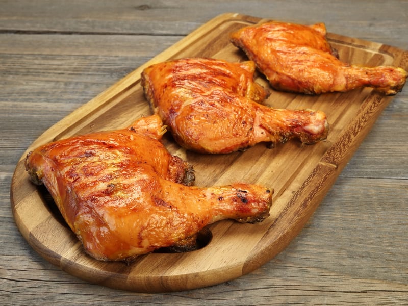 - Place the meat on the BBQ and turn down to low. If there is a lot of smoke, move the meat to the top rack of or set on a piece of aluminum foil.