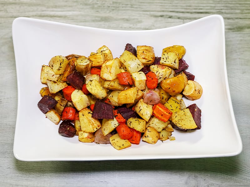 During the holidays, it is easy to overindulge in rich foods and sweet desserts. Try to fill your dinner plate with vegetables and you will be less likely to fill up on some of these unhealthier choices. Roasting a batch of different types of veggies creates a side dish to please everyone’s taste.