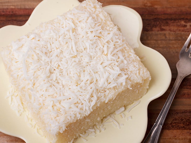 This is a super easy rich, creamy coconut pudding recipe that is sure to be a crowd favorite. Once chilled overnight in the fridge, it can be cut into squares and served with tea.